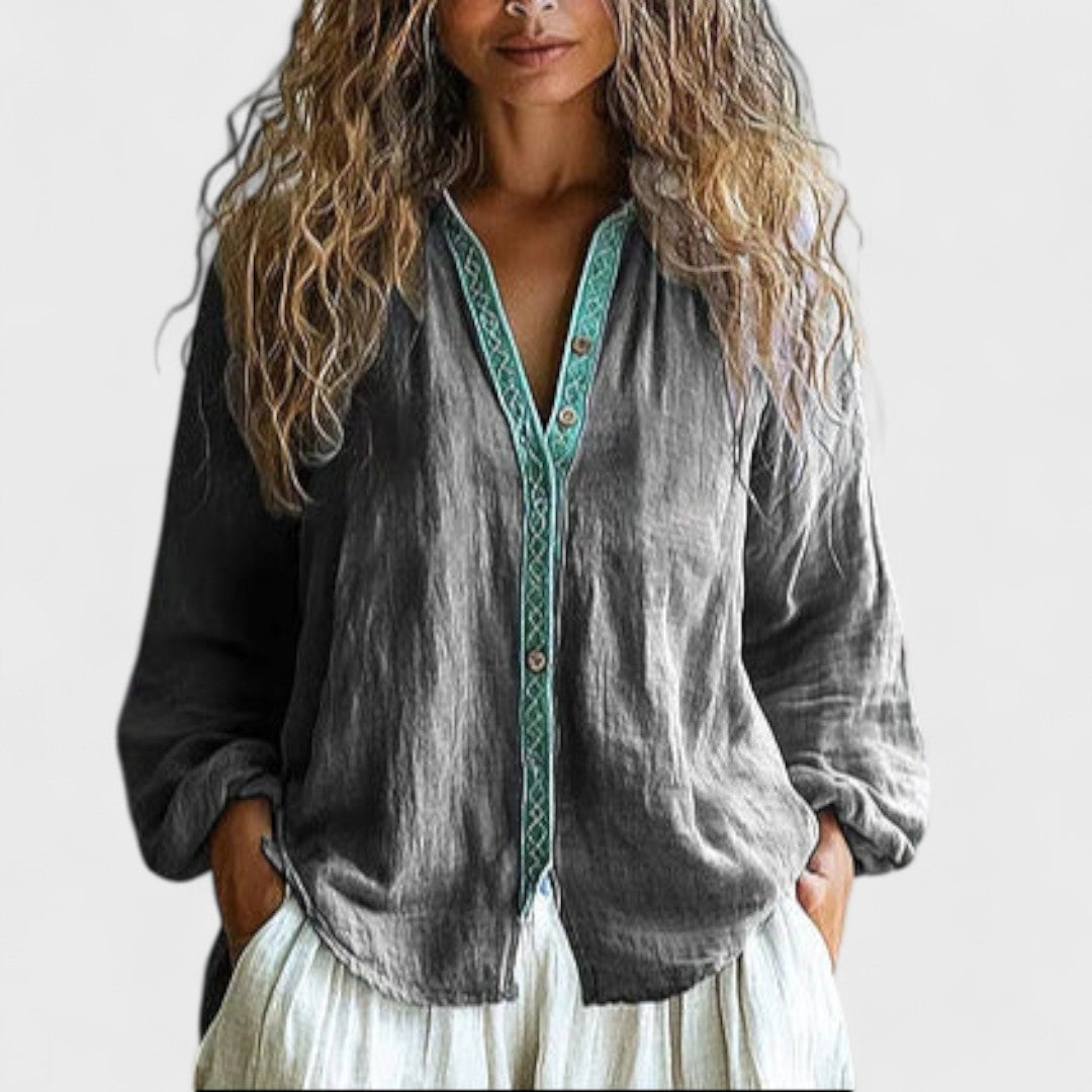 L'essenziale autunnale per ogni donna che vuole combinare stile e comfort. Questa elegante blusa aggiunge un tocco vintage al vostro guardaroba e vi permette di brillare in ogni occasione. Iniziate la stagione con sicurezza ed eleganza fin dal primo giorno!
